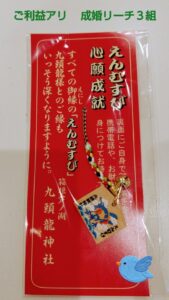 こんにちは。 10月に入って嬉しいお知らせが入って来ました♪箱根の九頭龍神社の縁結びの御守りを先日、会員さんに送った効果かも   なんと会員さんから次々と、 「プロポーズします。」 「親に会わせました」 「清水