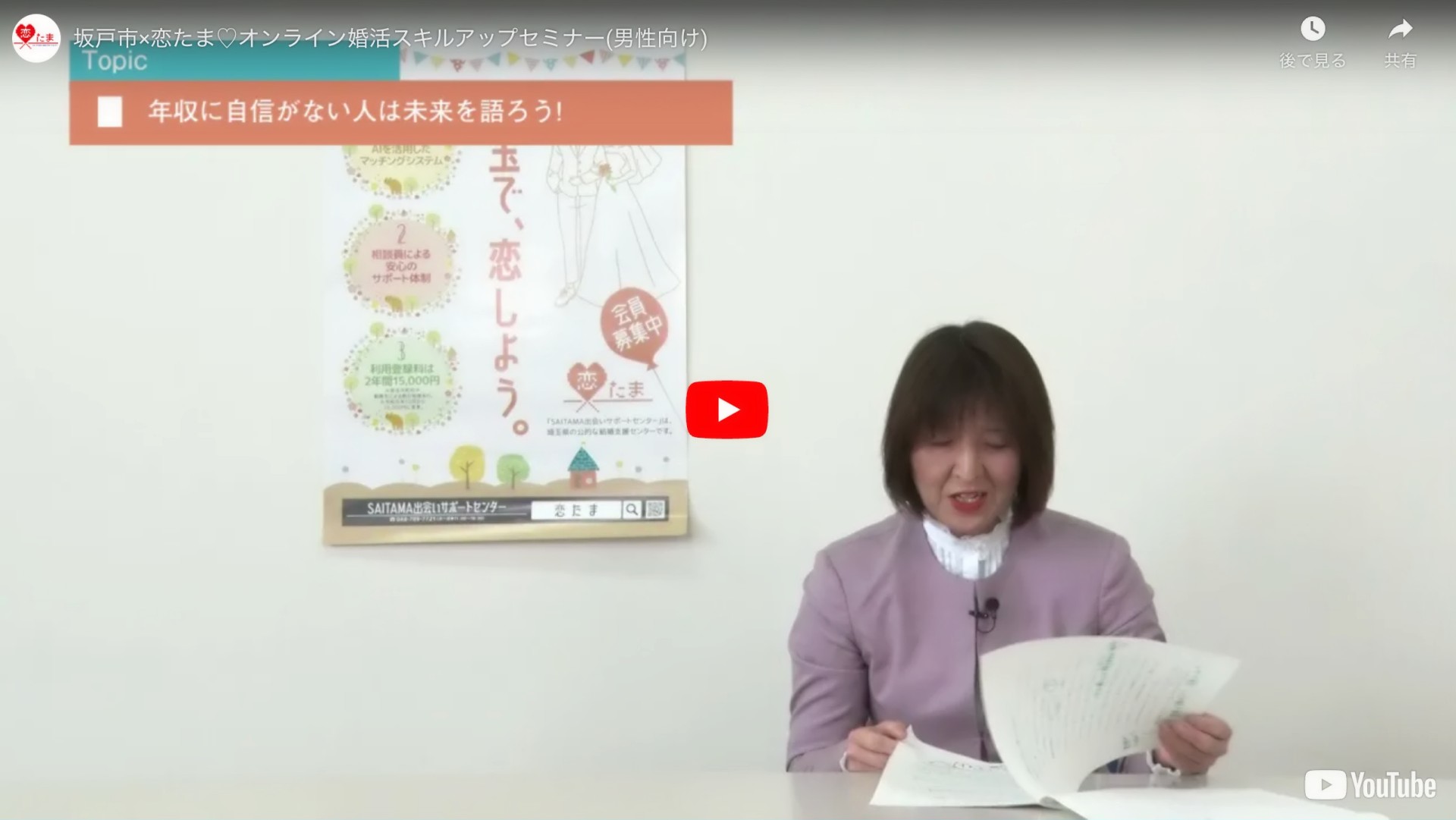 埼玉県が始めた婚活として、テレビや新聞で話題の「恋たま」(SAITAMA 出会いサポートセンター企業会員 恋たま:埼玉県の公的な結婚支援サービス)でスミレクラブ代表 清水が講師をしています。
