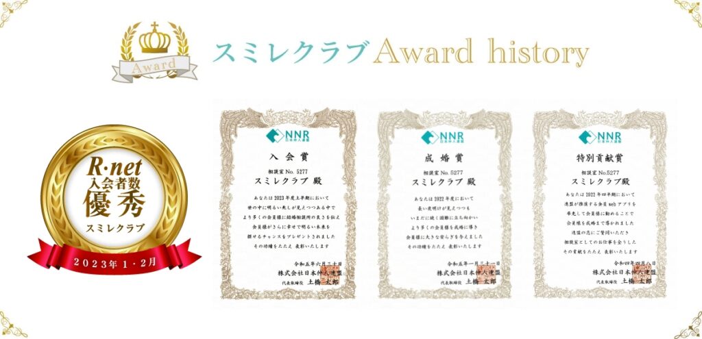 受講生の成婚率が高いことから、日本仲人連盟より毎年表彰を受けています。